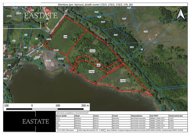 Działka z dostępem do jeziora, 3045m2. Piękna działka z bezpośrednim dostępem do jeziora w Martianach, powiat ...